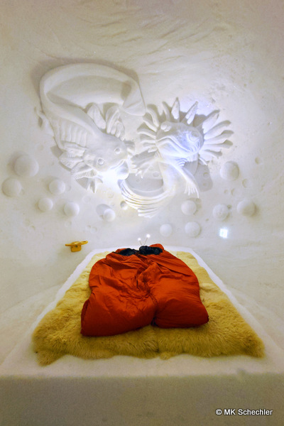 „Durch die Isolation des Schnees herrscht in den Iglus eine Temperatur um 0° C, keiner muss frieren!“, so Adrian Günter, der das Konzept vor dreißig Jahren erfunden und immer weiter verfeinert hat, bei einem persönlichen Treffen mit uns im vergangenen Jahr.